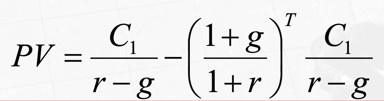 What is the present value formula for a perpetuity with growth?