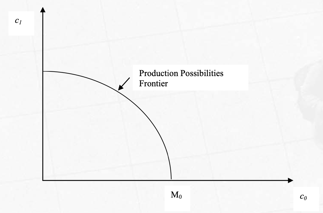 a curve showing maximum output possibilities of consumption good in 2 periods