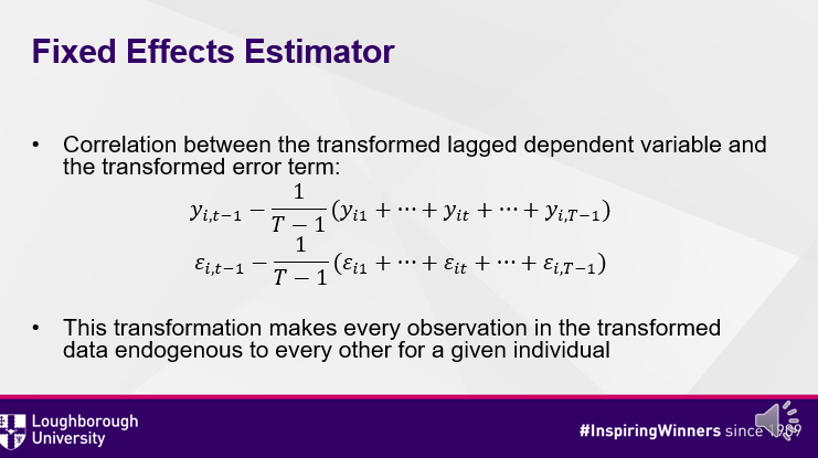 This is preferable to the application of the within transformation, as that transformation makes every observation in the transformed data endogenous to every other for a given individual.