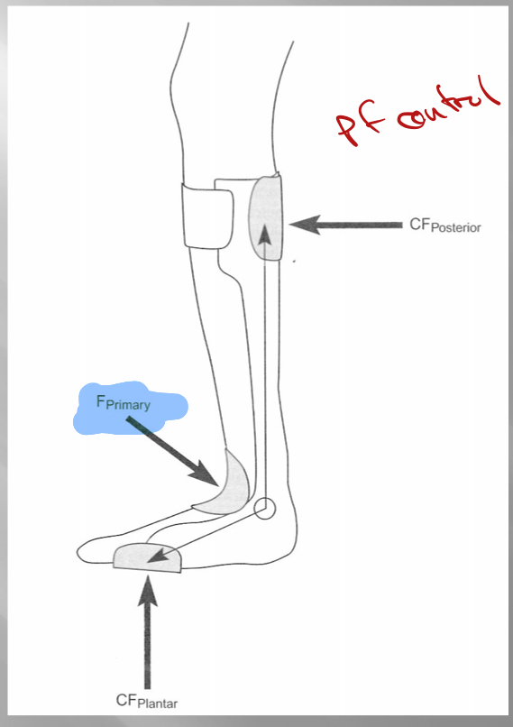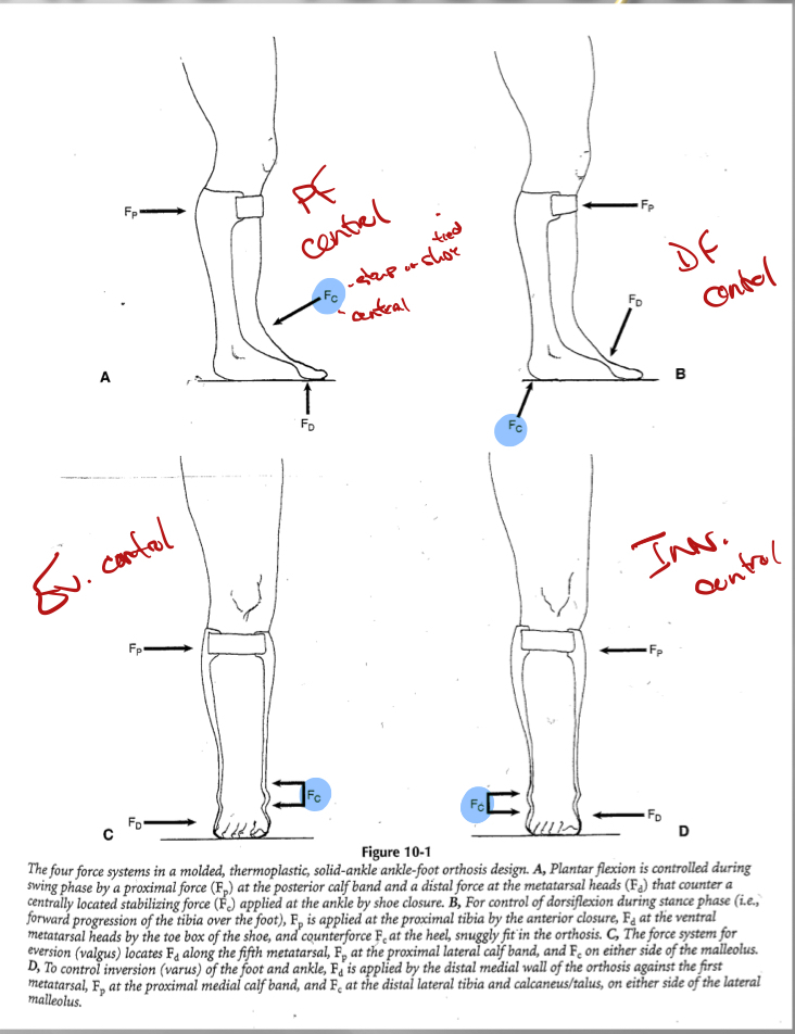 *rigid solid ankle AFO that fixes ankle in DF prevents
