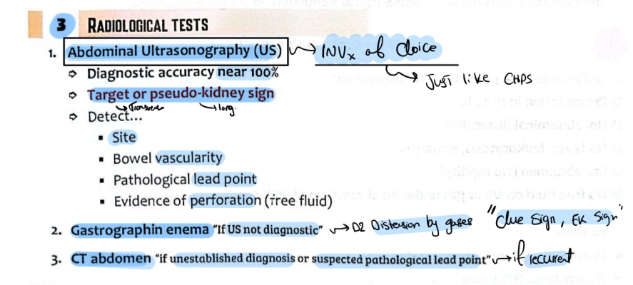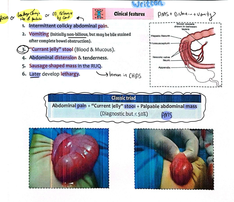 Abdominal pain + “Current jelly” stooi + Palpable abdominal mass