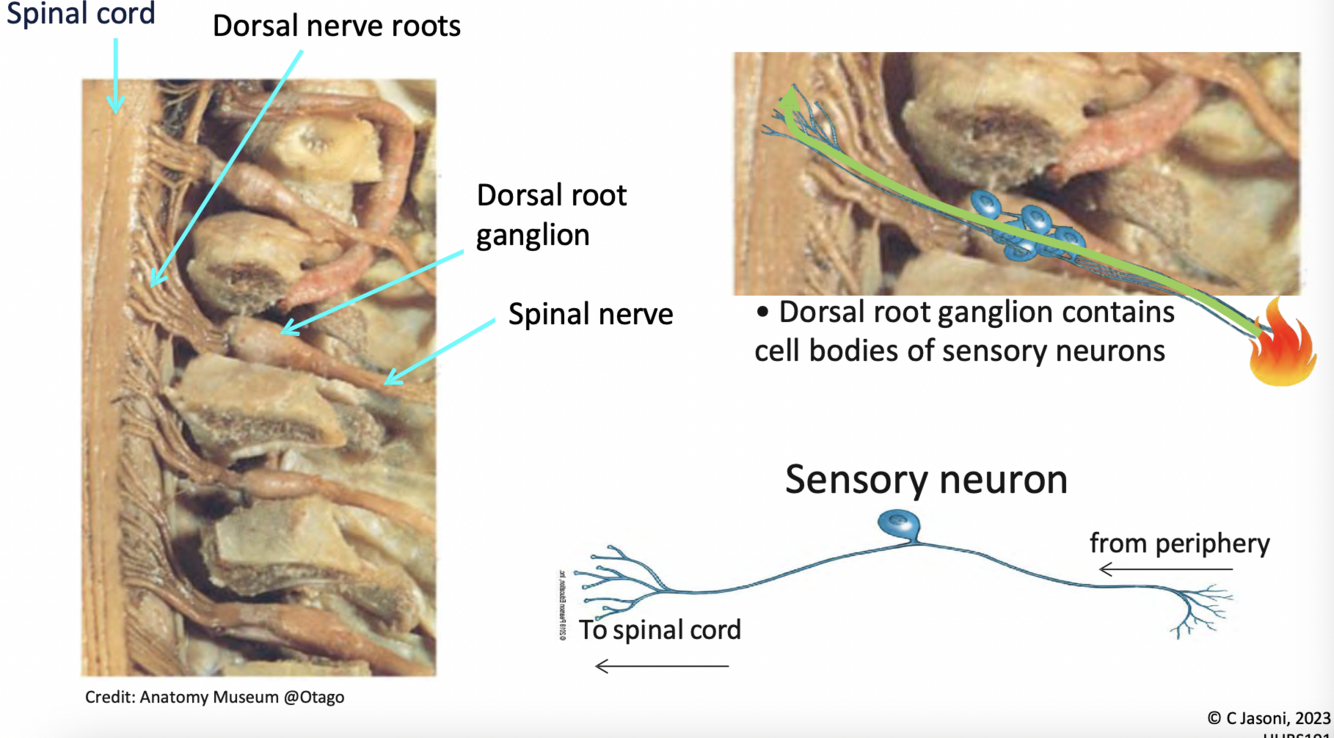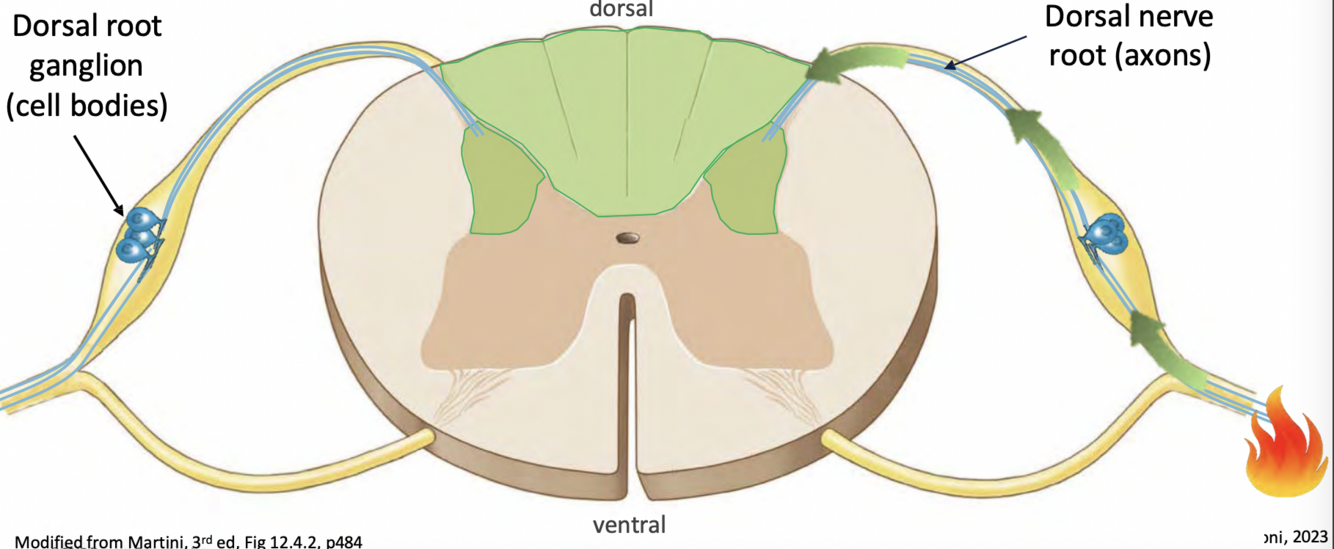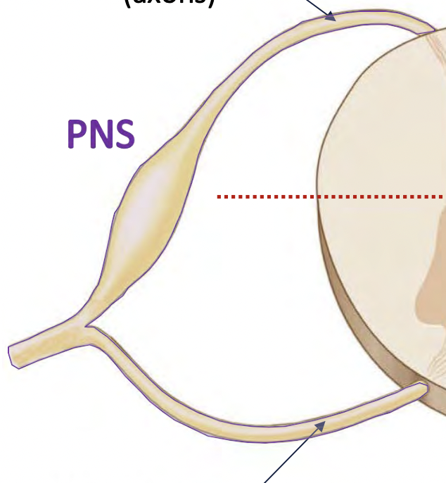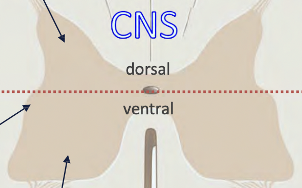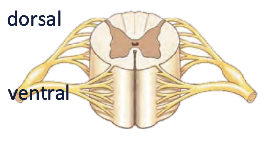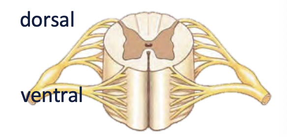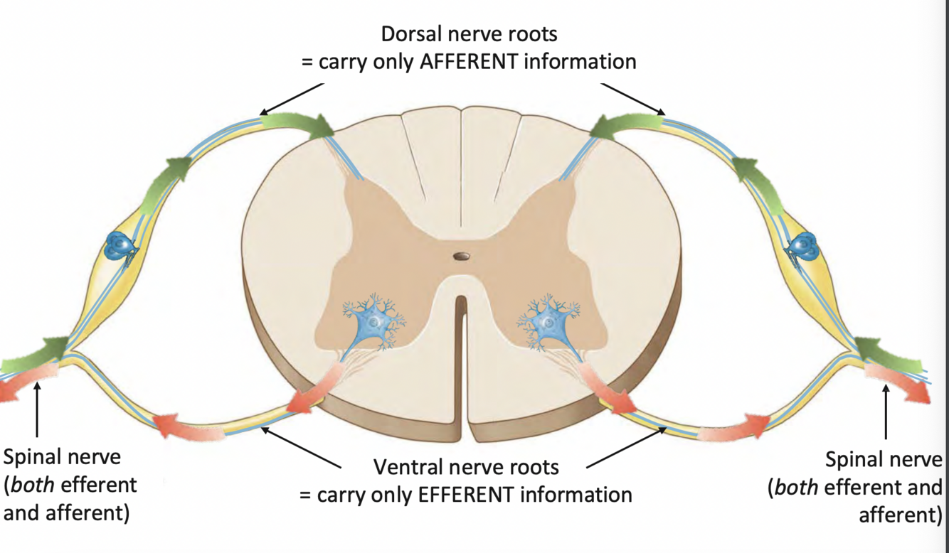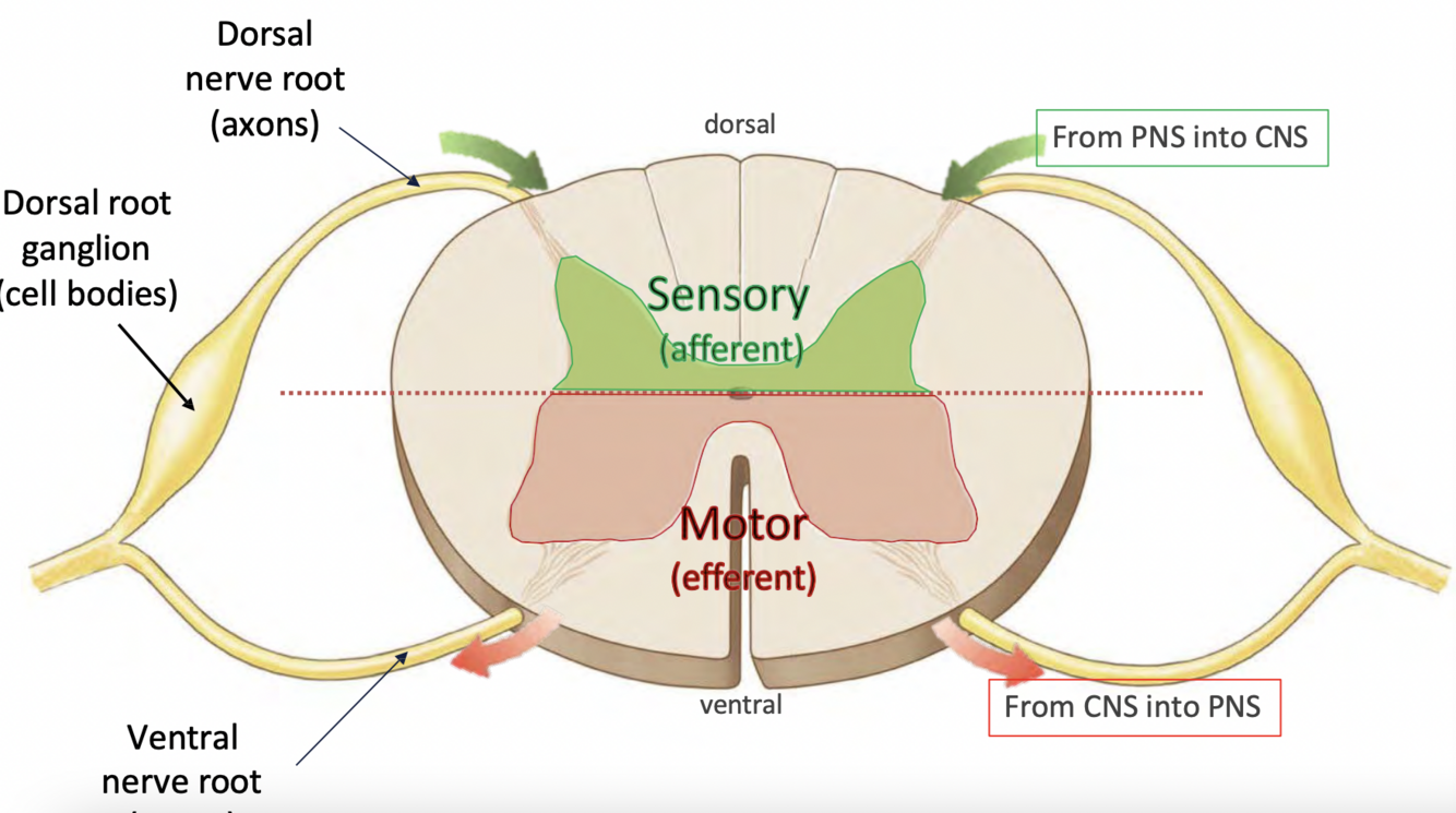 -Dorsal side: Sensory (afferent) Dorsal nerve root carries infor from PNS to CNS