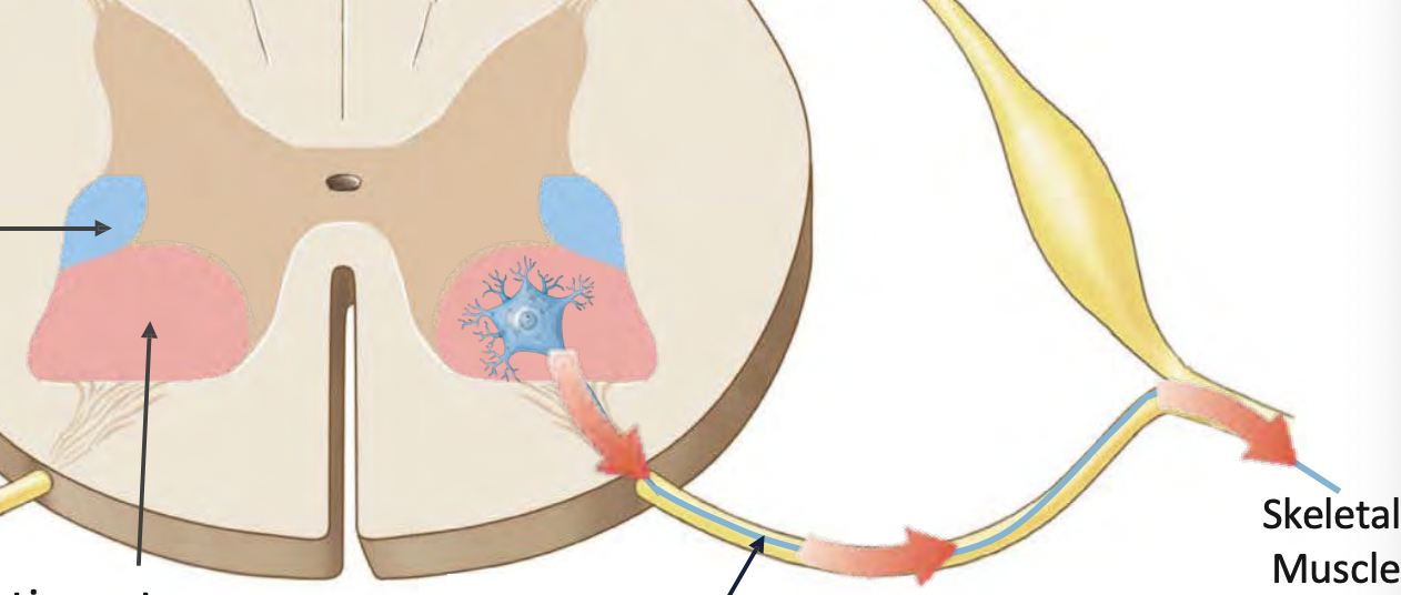 Red (ventral horn): Somatic motor neurons (cell bodies)