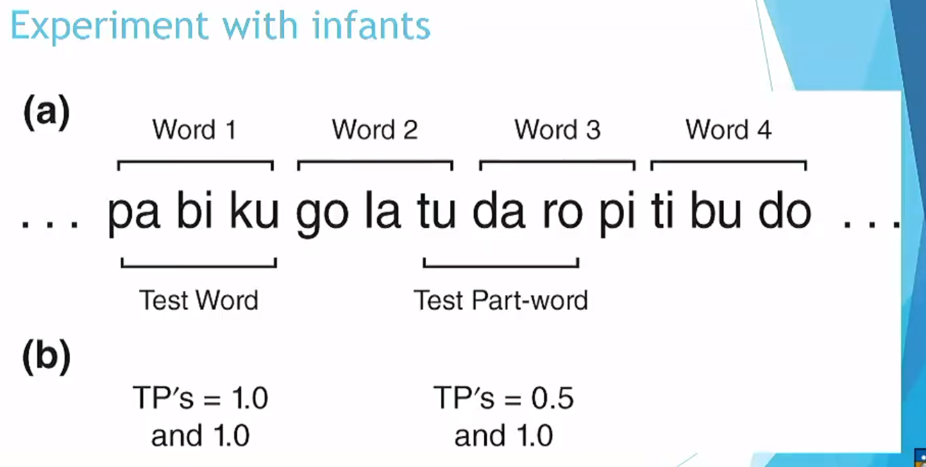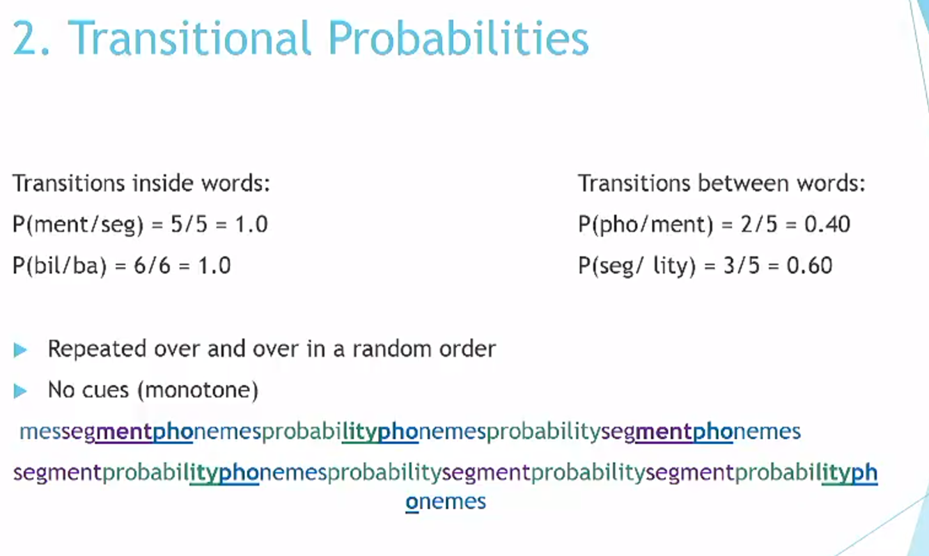 Adults are capable of using statistical regularities in a language learning task (we have the ability to use word boundaries fast, based on transitional learning)