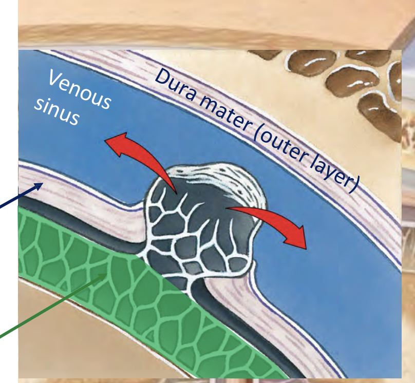 -transports old CSF into venous sinous through the Inner layer of dura mater