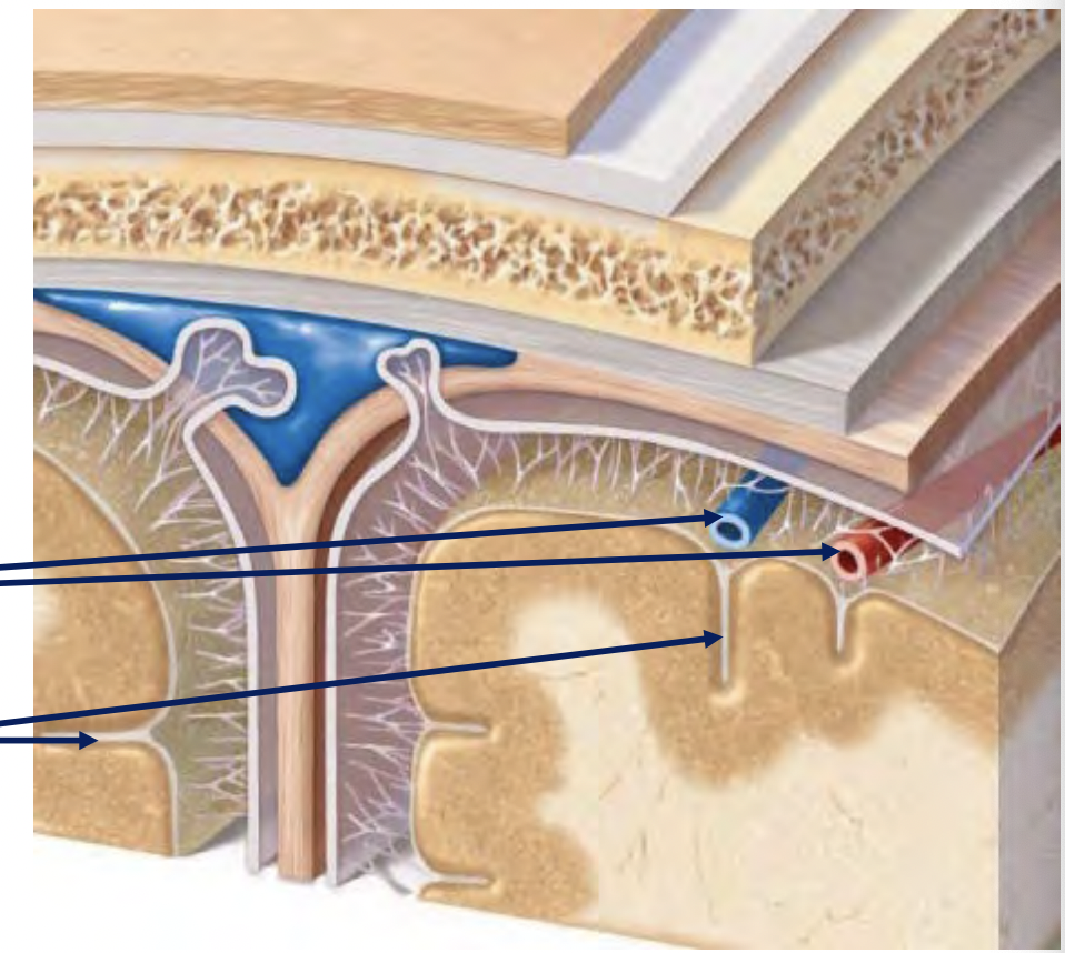 -Blood vessels sit atop of pia mater