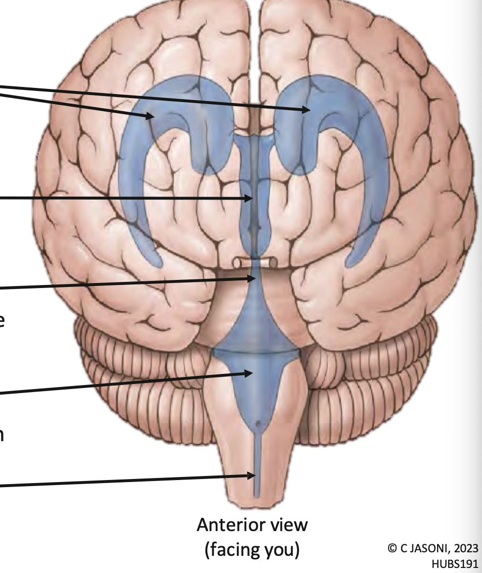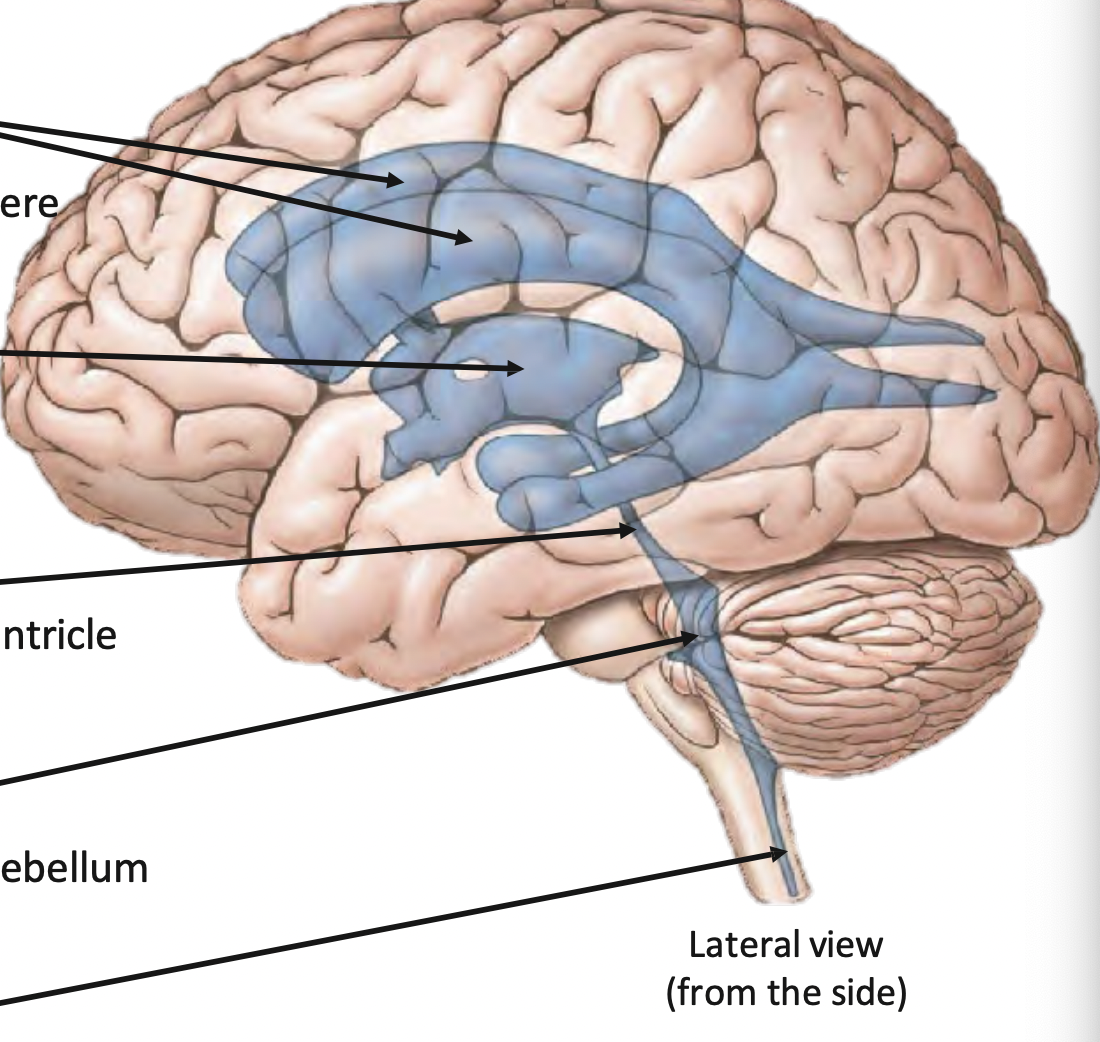 -Network of interconnected ‘spaces’ (ventricles) within the brain
