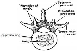 What is the structure of a thoracic vertebrae?