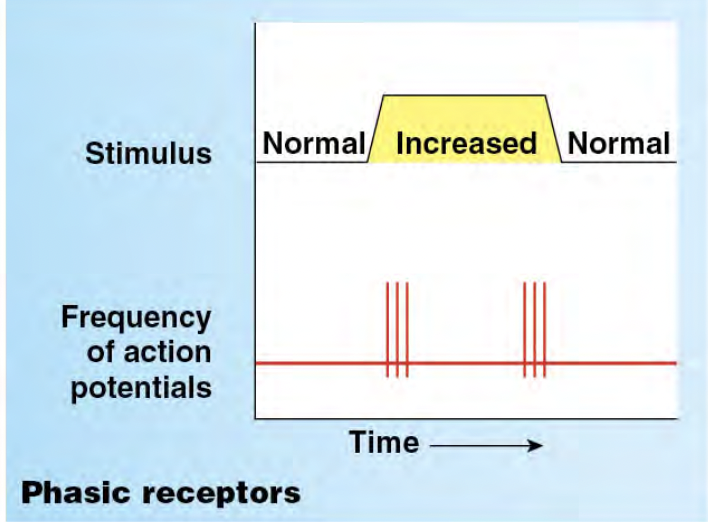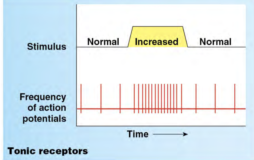 Continually active to reflect background level of stimulation. AP frequency changes when stimulus intensity changes