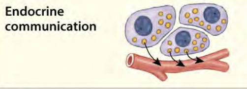 Endocrine gland cells produce hormones which is secreted by endocrine gland into blood stream, travels to target cells