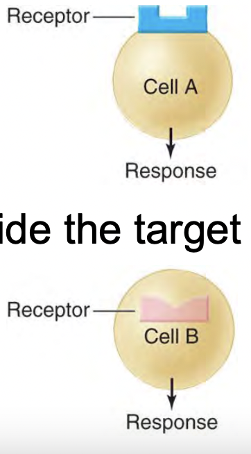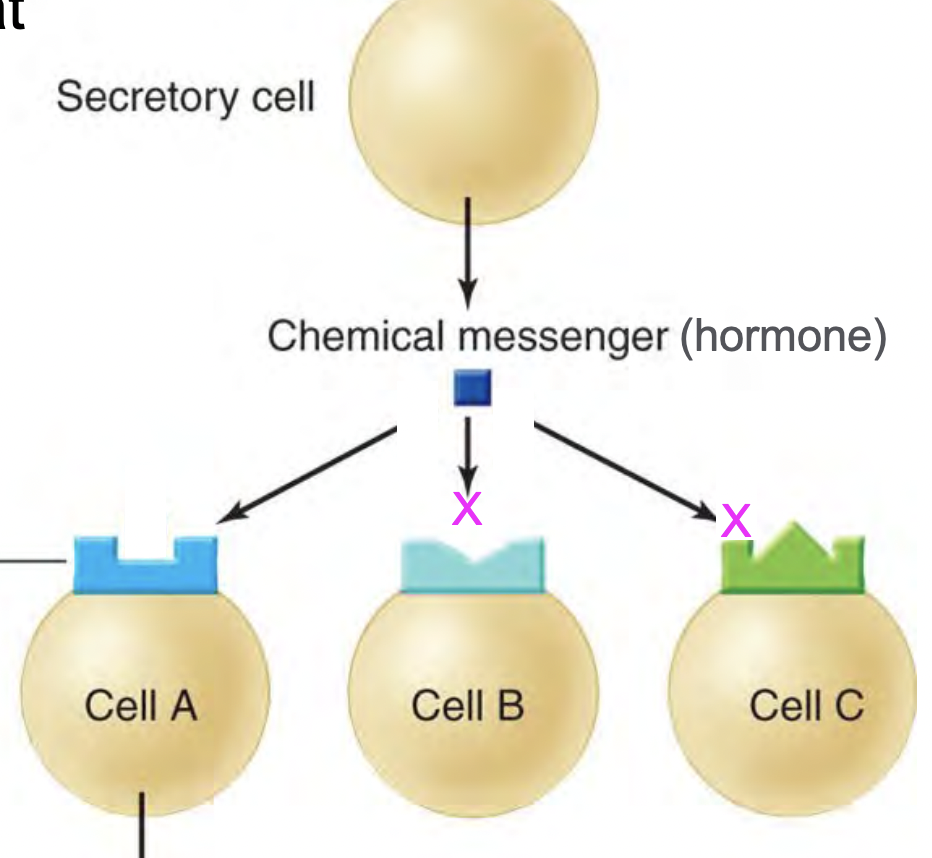 Target cells, in distant tissues and organs that must have appropriate receptors