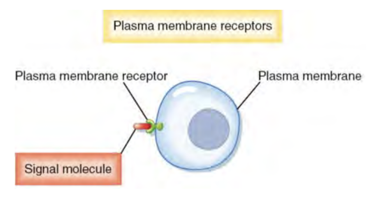 As they cannot cross cell membrane, receptors are located in target cell membrane