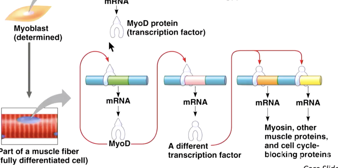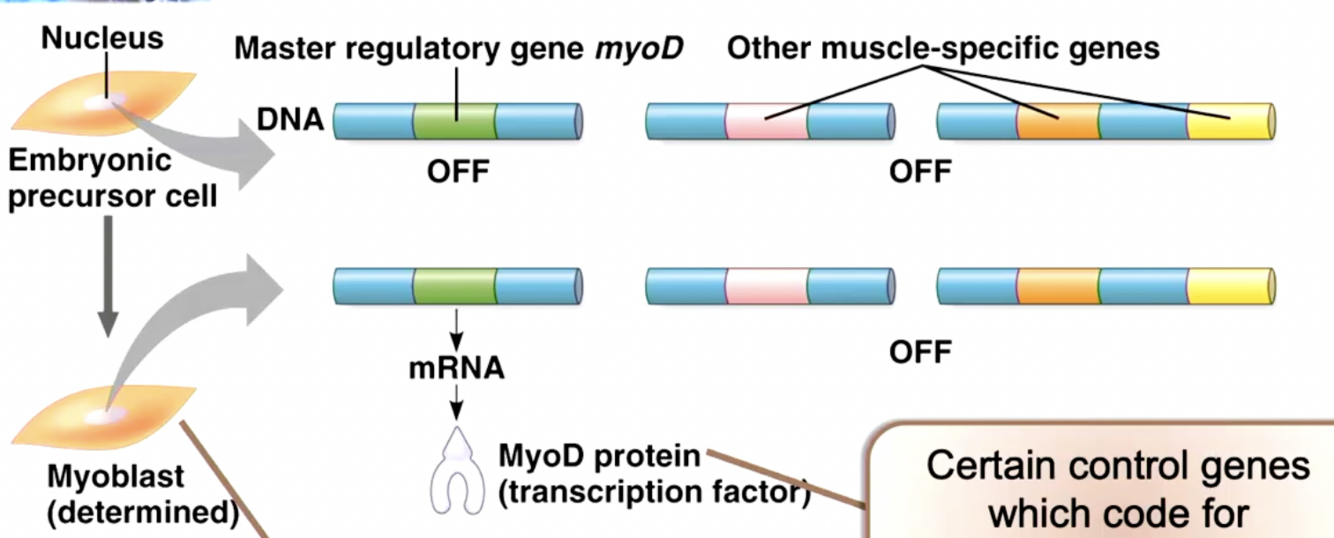 Exposure to different environments activates a gene eg myoD. transcriptoin factor makes mRNA of the gene