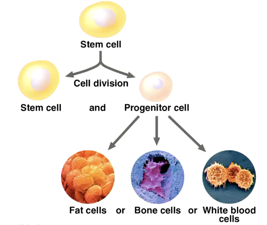 progenitor cell can divide and become a specialised cell