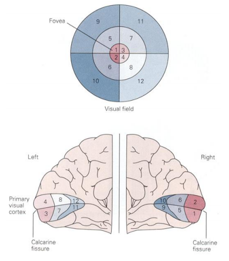 Neighbouring cells within the retina project to neighbouring cells in the LGN and the visual cortex (the organisation is preserved throughout the pathway)