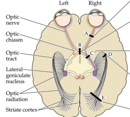 Describe where in the pathway the lesions would be to cause the following visual field defects: