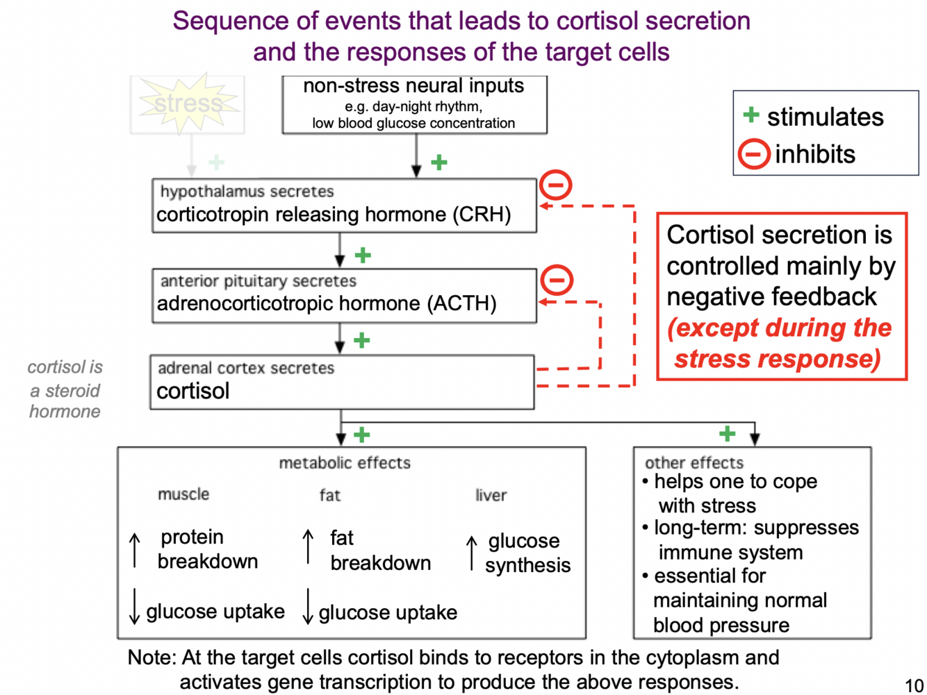 -Lowered secretion of both cortisol and aldosterone (low cortisol concentration)
