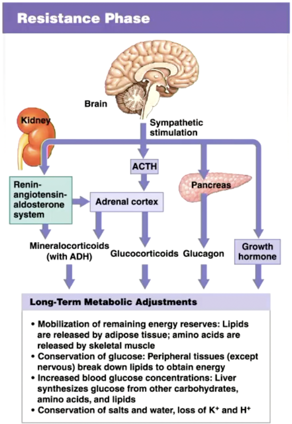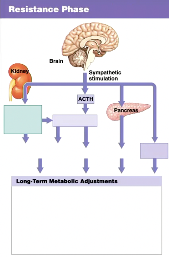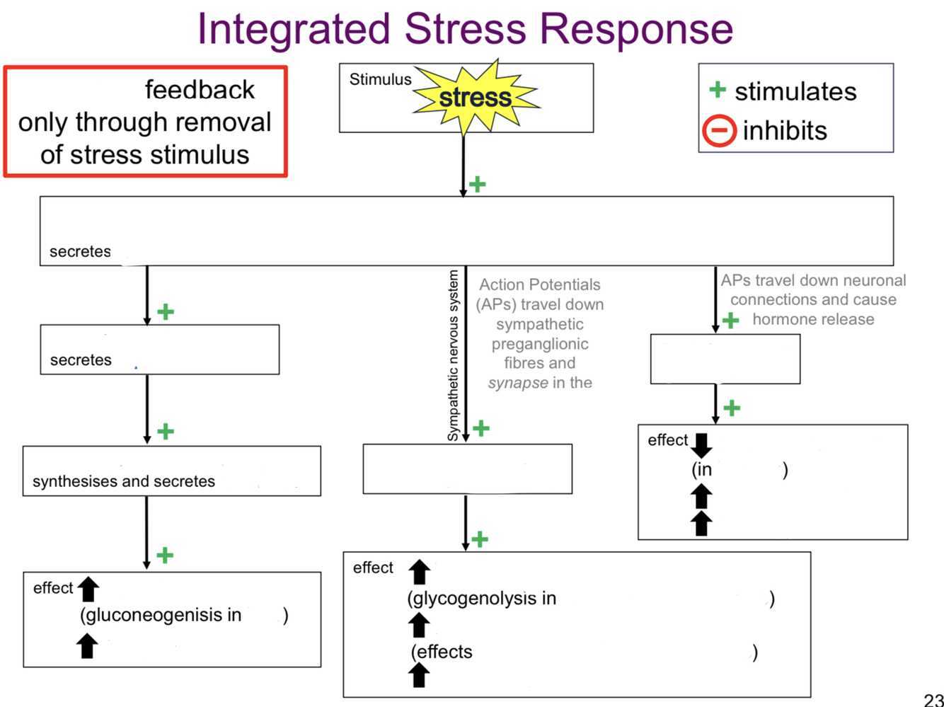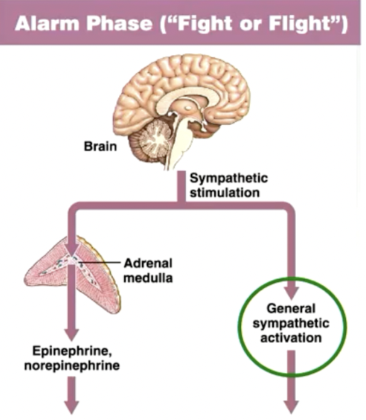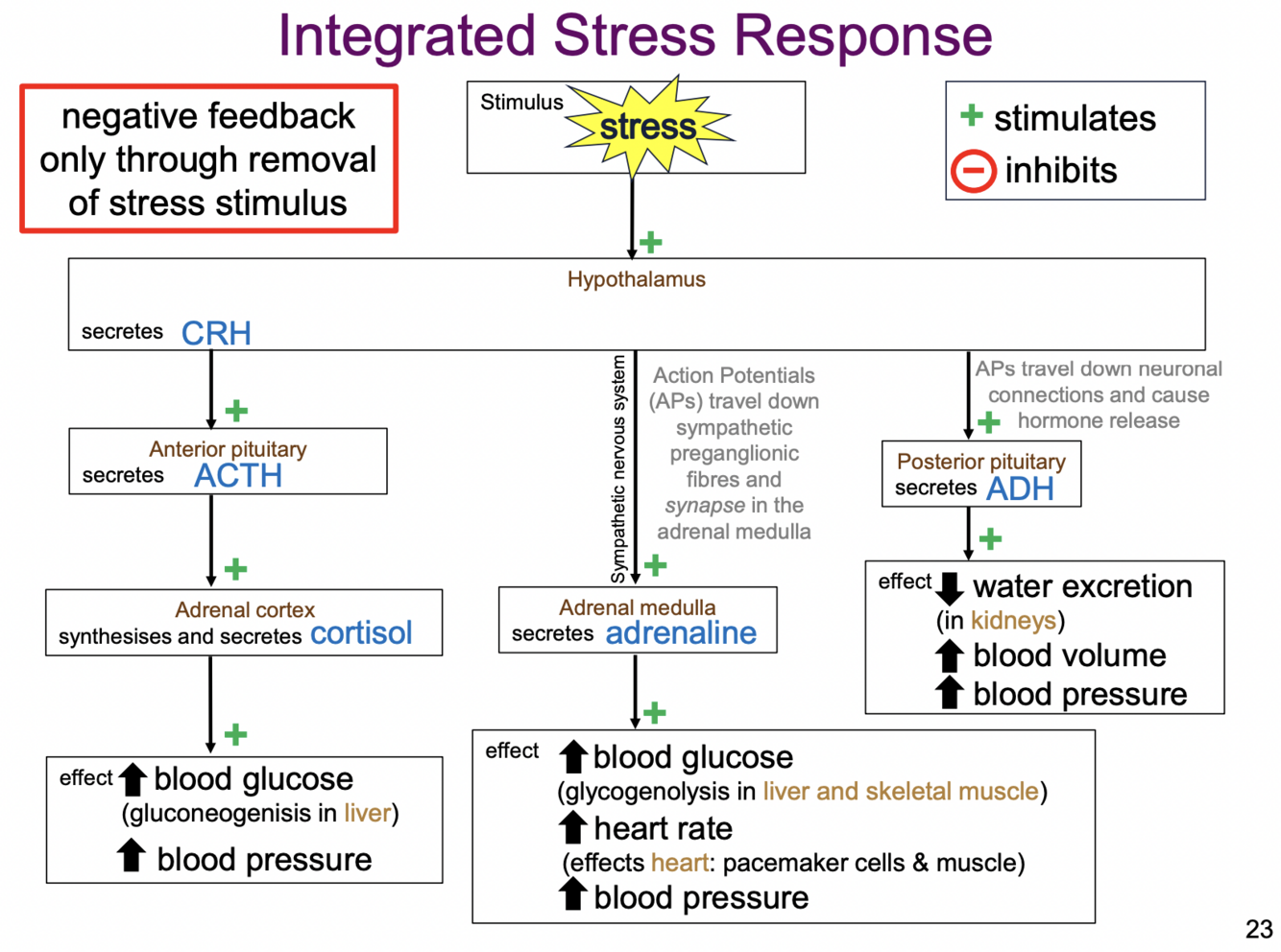 -Hypothalamus organises a response and activates: Andrenal Glands, sympathetic nervous system, posterior lobe of pituitary gland