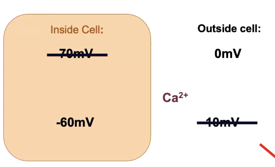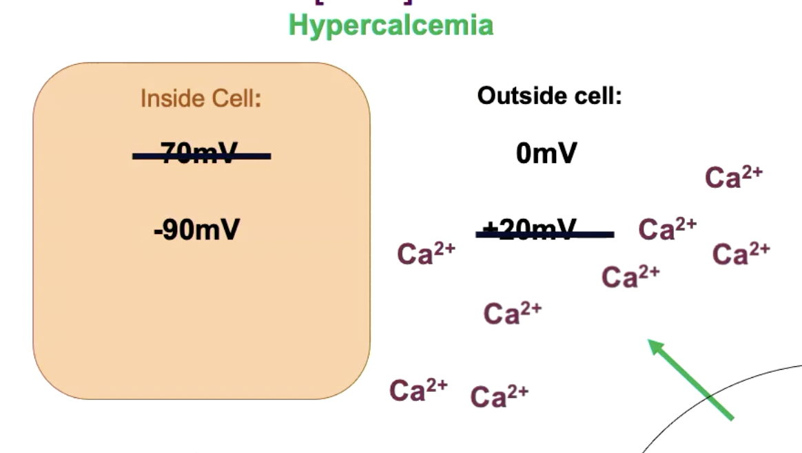 Increased Calcium lowers RMP inside cell making it harder to reach threshhold