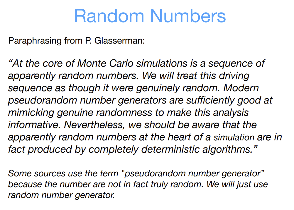 What is A monte Carlo simulation, and what is the use of random numbers for it?