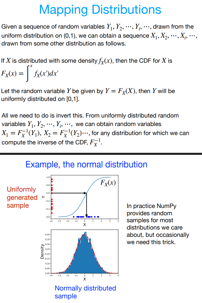 What is a mapping distribution and how does it allow use to generate a random distribution from a more complex distribution from a sequence of random variables that draw from the uniform distribution?