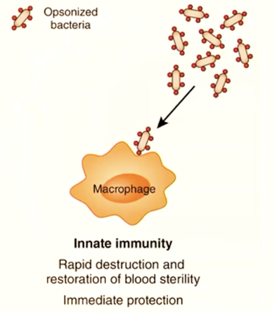 Labels pathogens with antibody or C3b (eat me) for phagocytes.