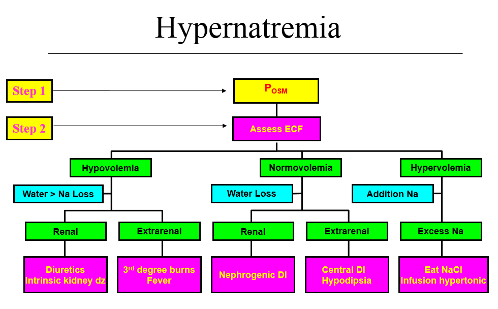 HYPERNATREMIA = DEHYDRATION!!!!! (too much water loss compared to salt)