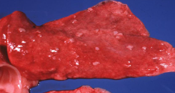Note: (change of phenotype of a tissue to another type of tissue); feels like stones in the lungs