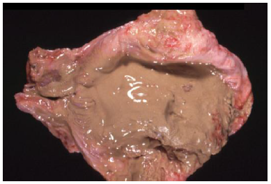 Horse urinary bladder filled with sediment (calcium carbonate and mucous)