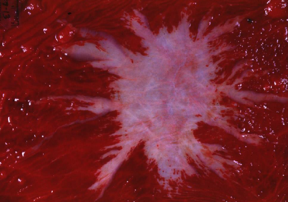 Unguiculate papillae in the rumenoreticular groove of a calf