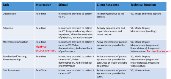 List all possible tasks Examples of different tasks: Observation Palpation ROM