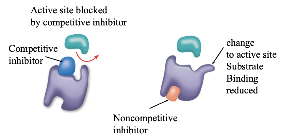 noncompetitive inhibitors bind to an ALLOSTERIC site of an enzyme, causing a change in shape and making the active site less effective