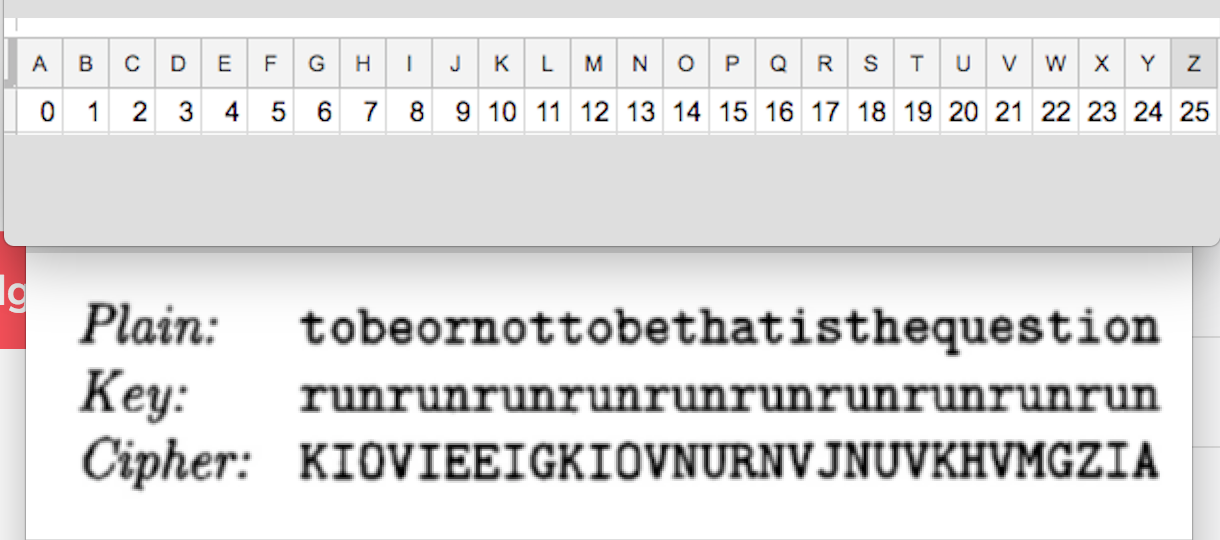 while the ciphertext is read off vertically