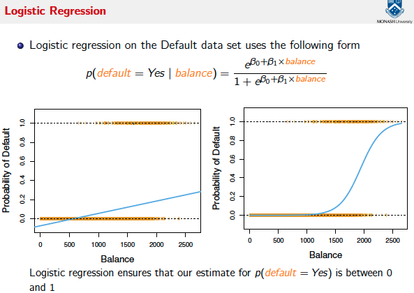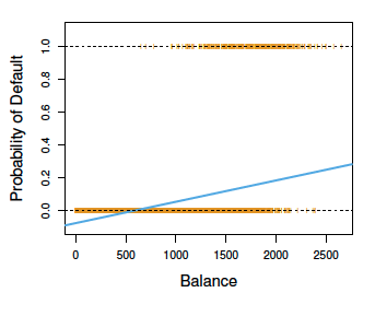 The linear regression model would produce probabilities less than 0 or larger than 1 when computing the likelihood of say, a defaulting borrower.