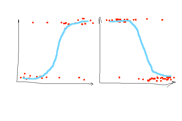 The coefficient affects the shape of the corresponding model, if positive (left), increasing the X will increase the Pr(Y=1). If negative (right), increasing the X will decrease the Pr(Y=1)