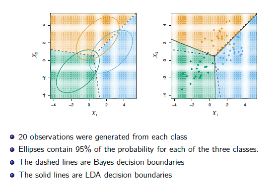 It is a classification method that utilises generative modelling. We attempt to estimate the within-class density of X, given the class label. We use Bayes’ formula and the prior probability to estimate the posterior probability of Y.