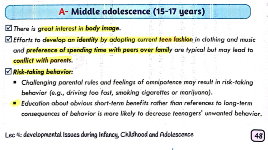Characters of Middle adolescence (15-17 years)