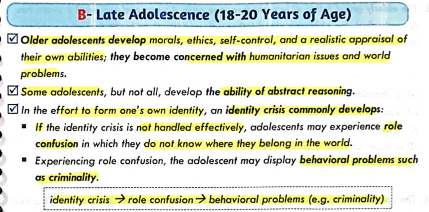Characters of Late Adolescence (18-20 Years of Age)