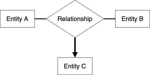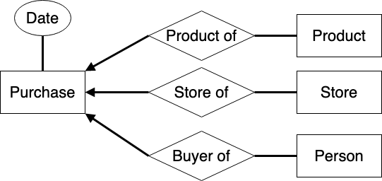 Equivalent to a multiway relationship, but the relationship becomes an entity with relationships to the other entities.