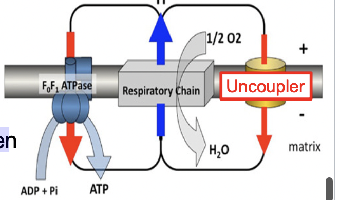 when protons flow down their concentration gradient, but not through the F1F0 ATPase