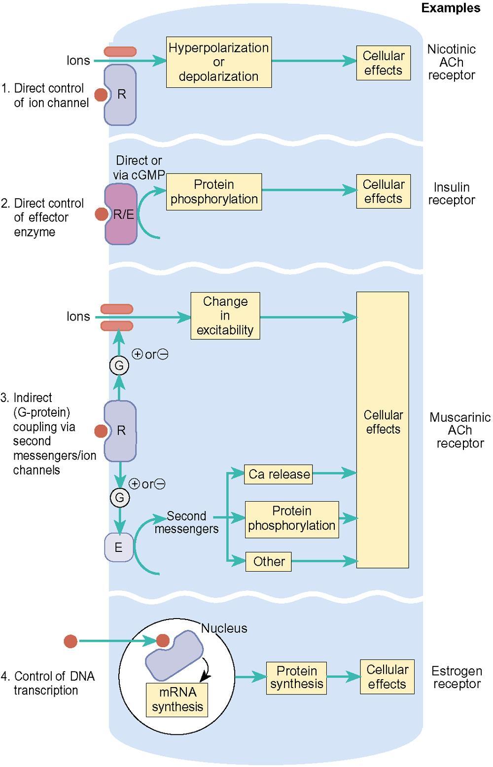 There are four basic ways in which activation of a receptor can alter the activity of a cell (4):