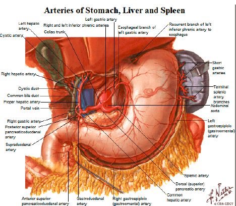 Unpaired mindline supply: Celiac trunk: Splenic A