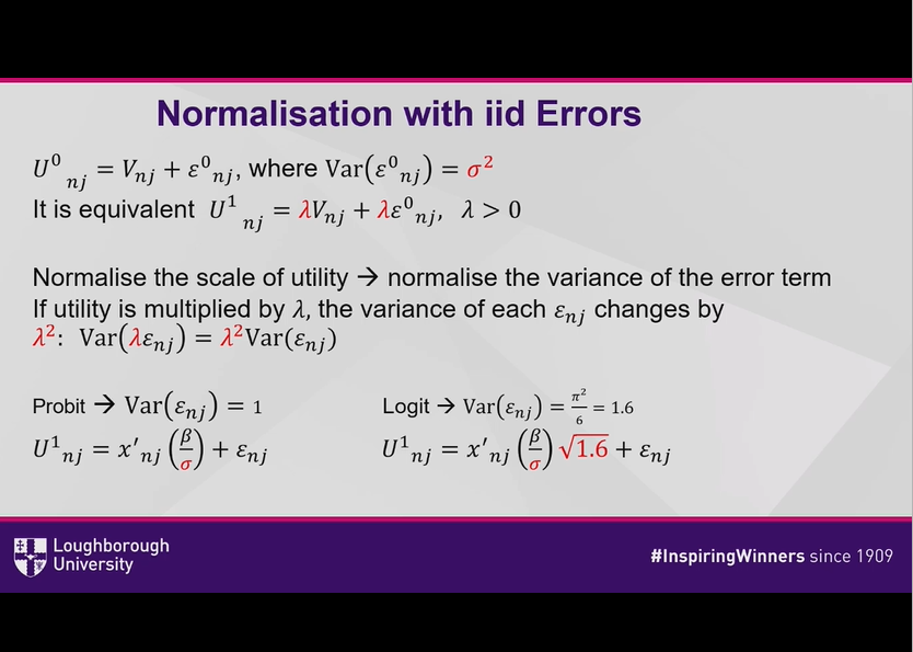 How does the normalisation of the error term affect the parameters of our Binary Choice equation?