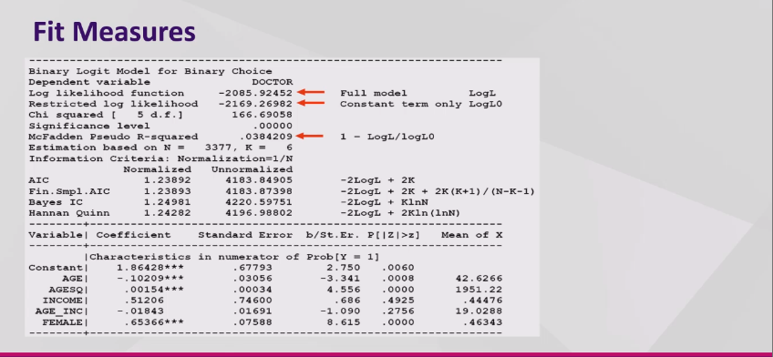 Where do you find the measure of fit on stata?