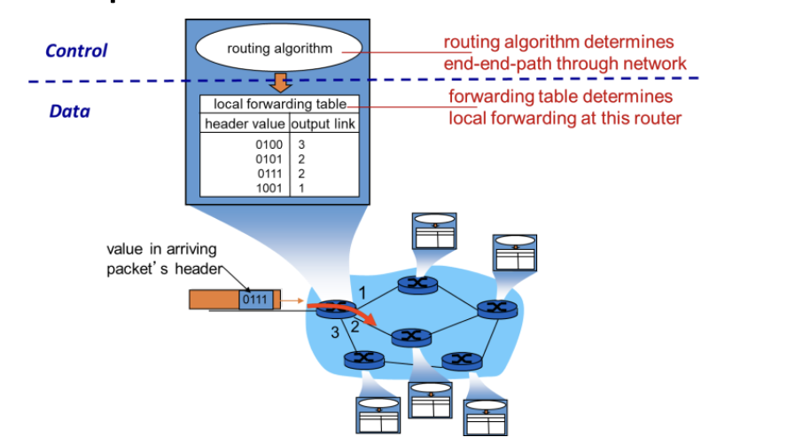 • Control plane: Determines end-to-end paths through the network (routing algorithms).