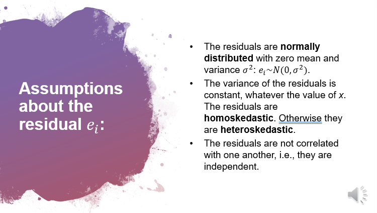 Given the assumptions of normality and homoscedasticity we can summaise the variability of data around our linear regression in a single statistics - the variance of the residual (σ2 ) .residual variance is as the part of the variance in y that is unexplained by x