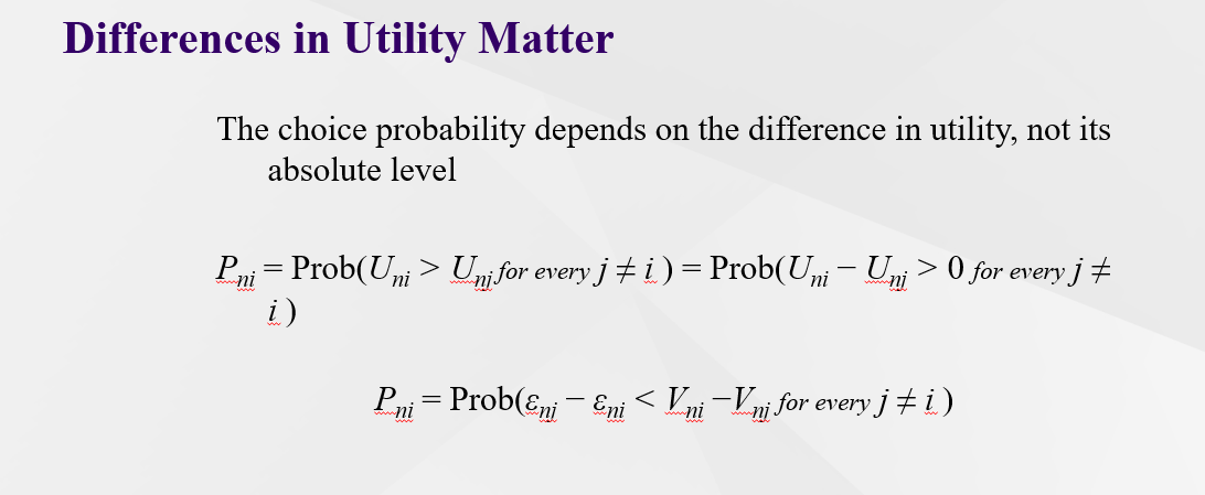 What does choice probability not depend on with regards to utility?
