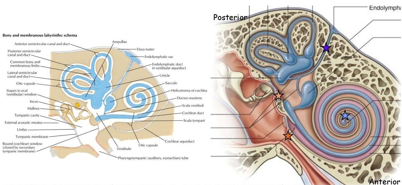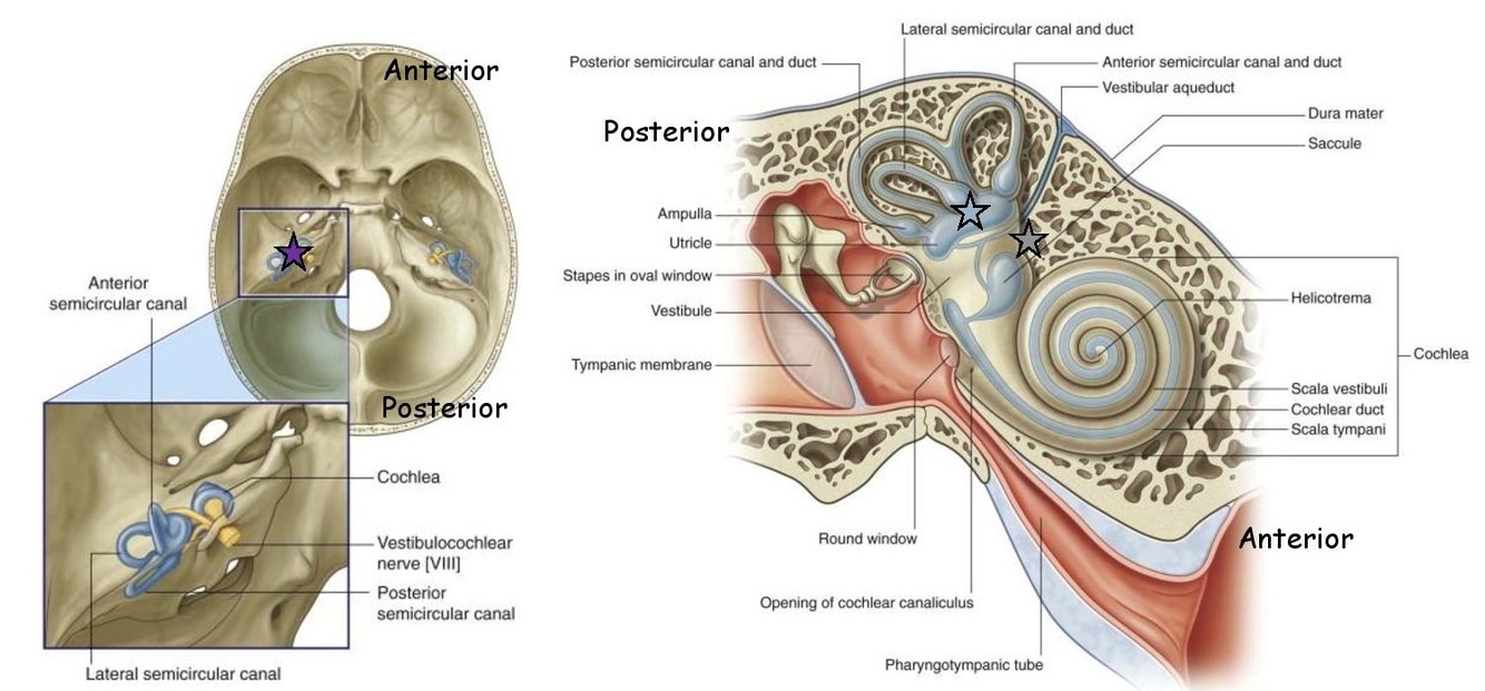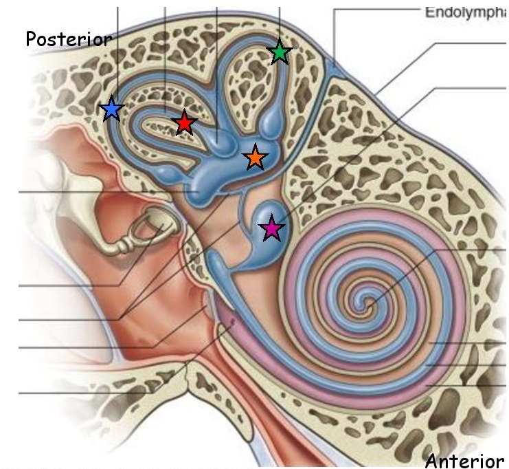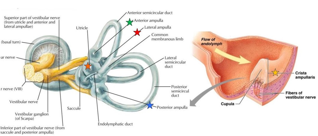 (To remember positioning of the otolith organs - remember the “tri” in uTRIcle can be likened to the THREE scc’s and thus that the utricle is positioned next to them, as opposed to the saccule, more proximal to the cochlear.)