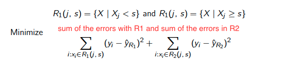 Select the predictor Xj and the cutpoint s such that splitting the predictor space into regions >/< s leads to the greatest reduction in RSS