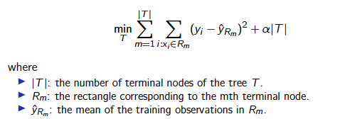 The nonnegative tuning parameter alpha is used to penalise the model for having too many terminal nodes.